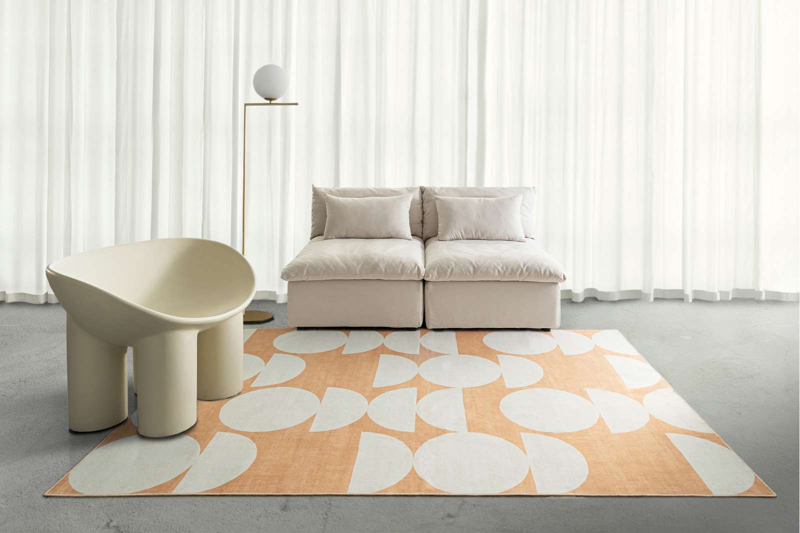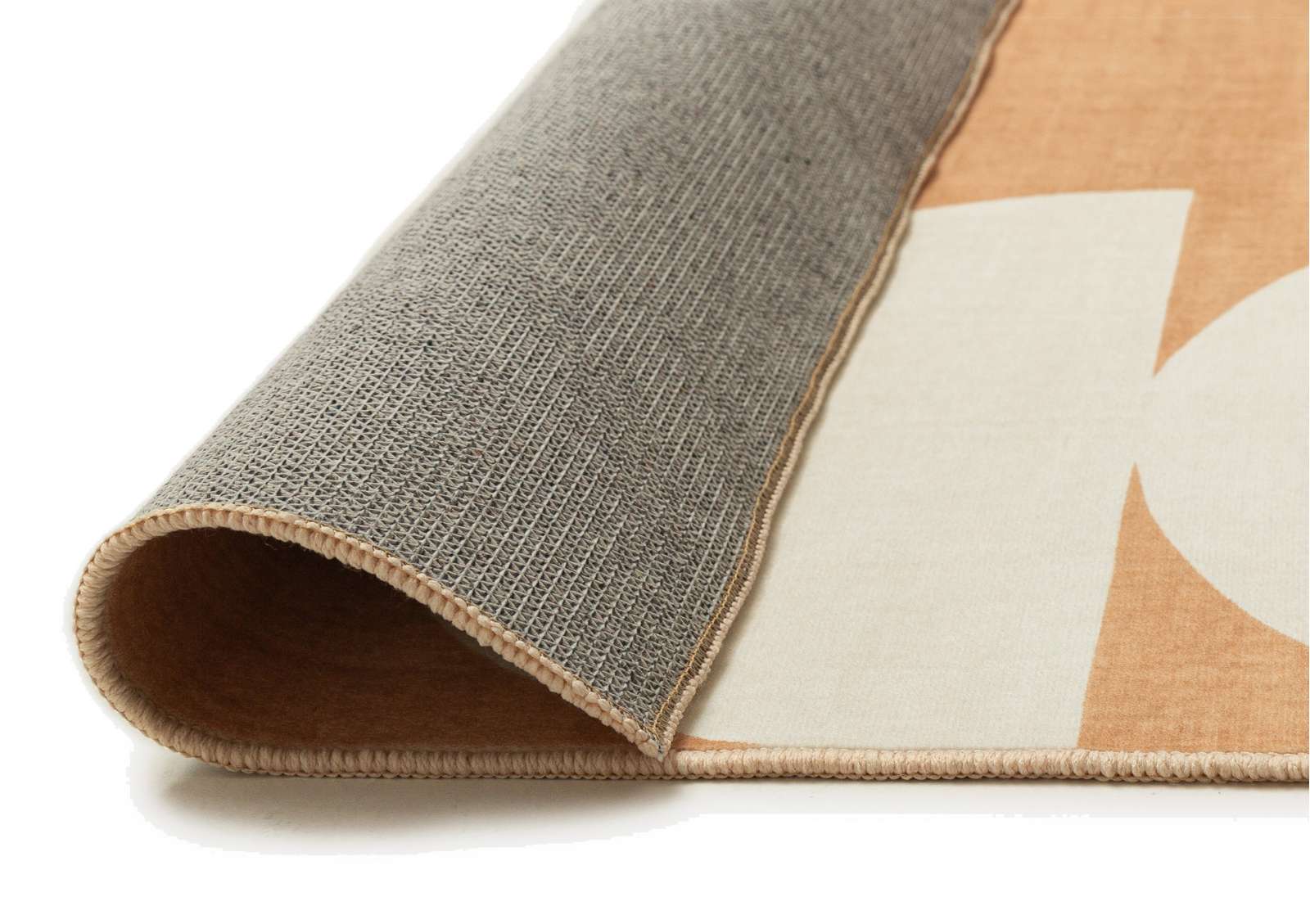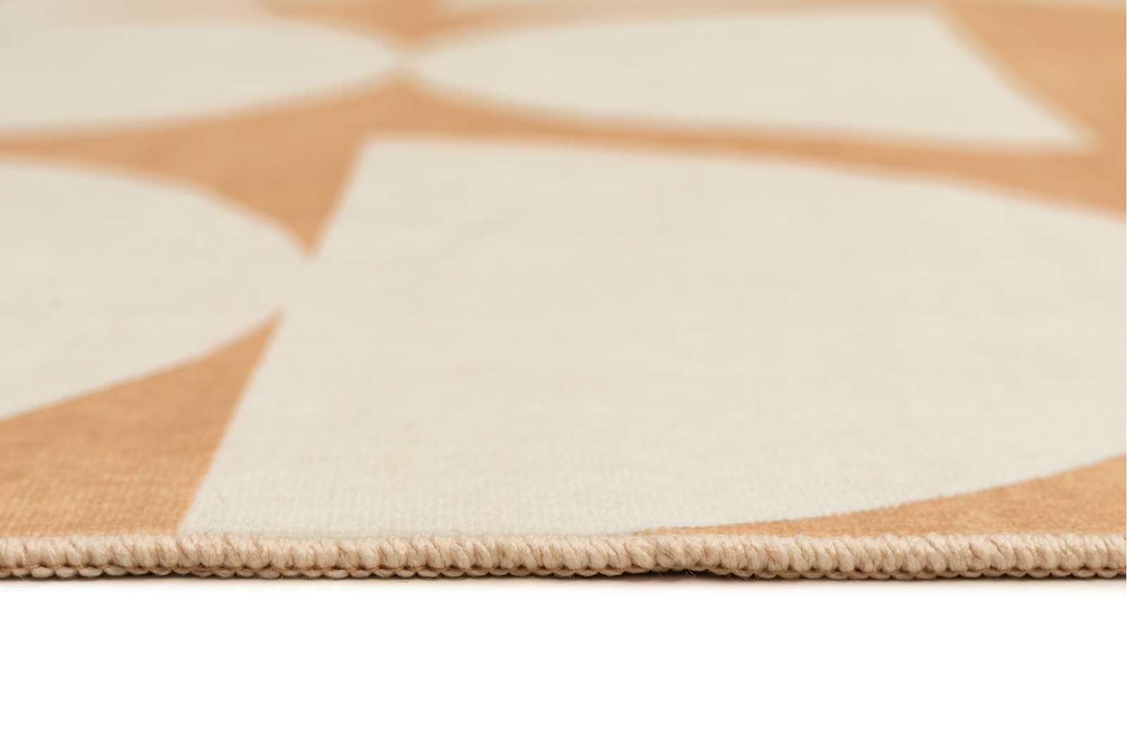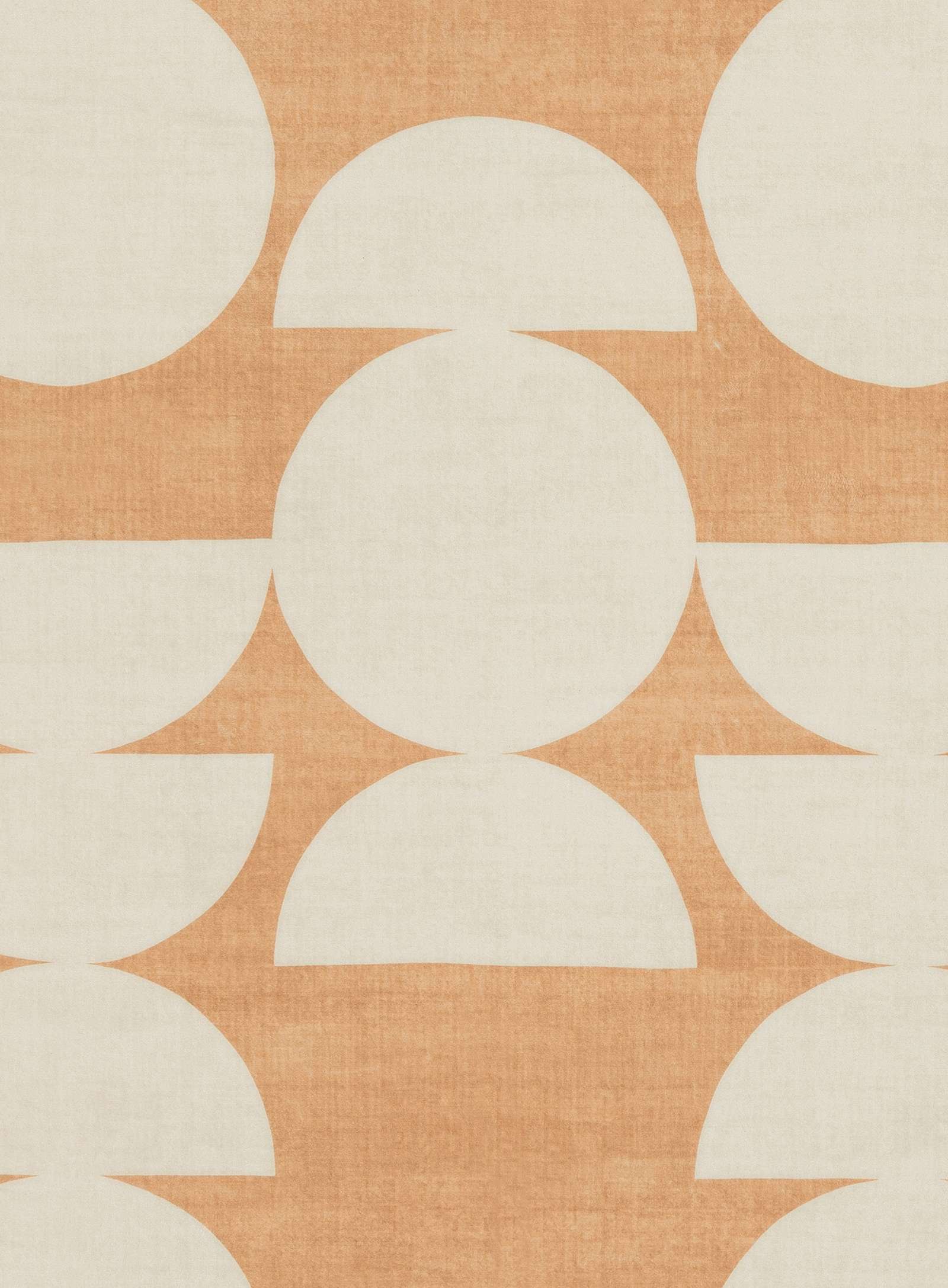 Tiari is a smooth, machine washable, foldable flatweave rug featuring a playful peach and cream half-moon design.