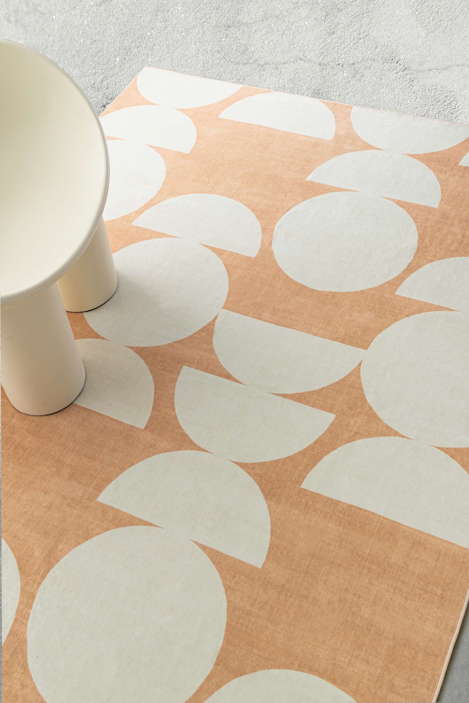 Tiari Half Moons Printed Peach and Cream Washable Rug