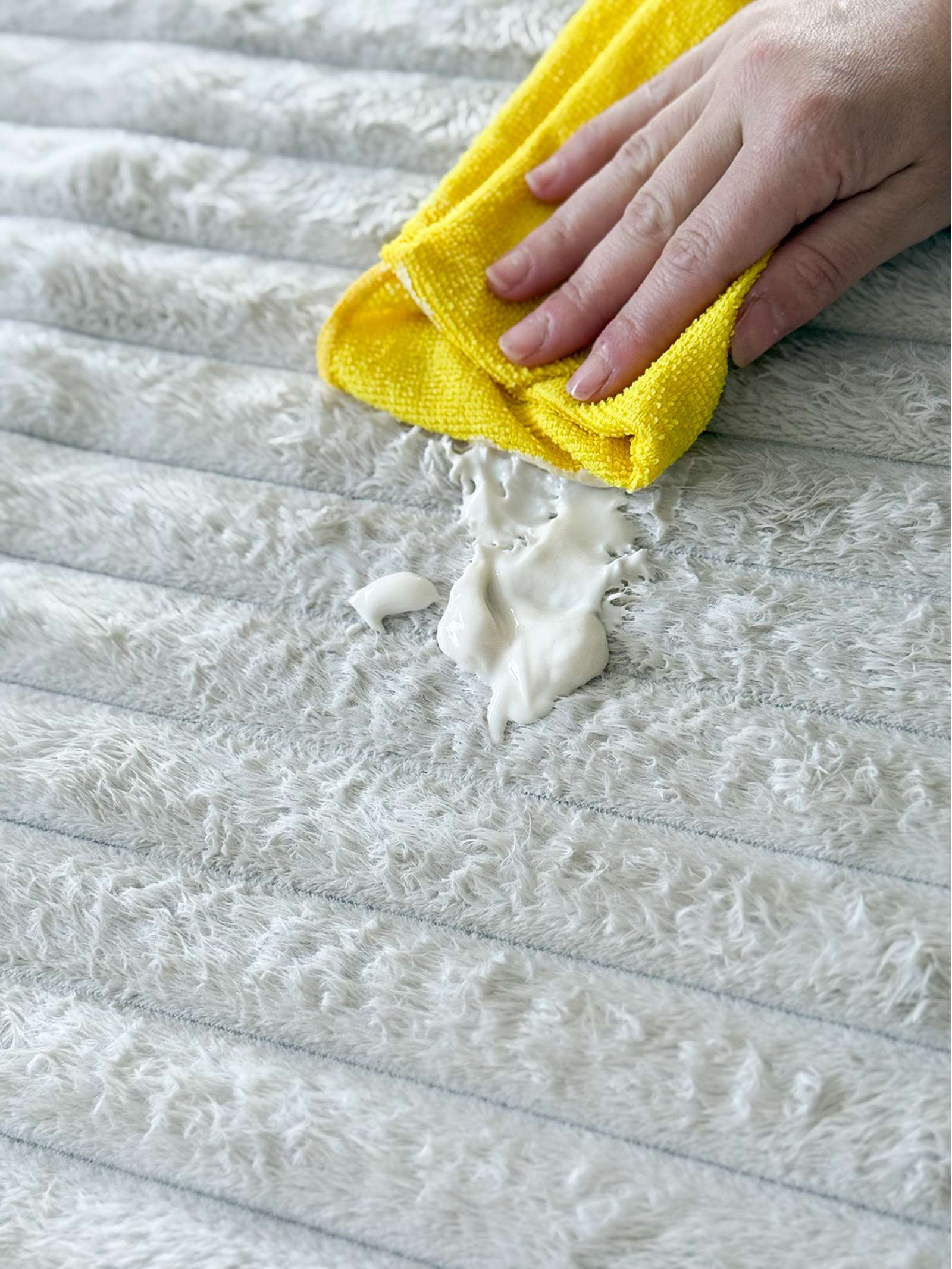 1. Cold machine wash below 30° 2. Do not tumble dry 3. Immediately hang and line dry after wash cycle 4. Avoid direct sunlight, hang dry in semi covered shaded area 5. Shake and fluff rug fibres after drying to revive texture 6. Do not bleach or use strong chemicals 7. Do not apply heat or iron 8. Do not dry clean 9. Not suitable for use in rooms with floor-heating 10. To maintain the grip on the built-in nonslip backing, avoid chemicals such as wood polish, wax and strong chemical cleaners