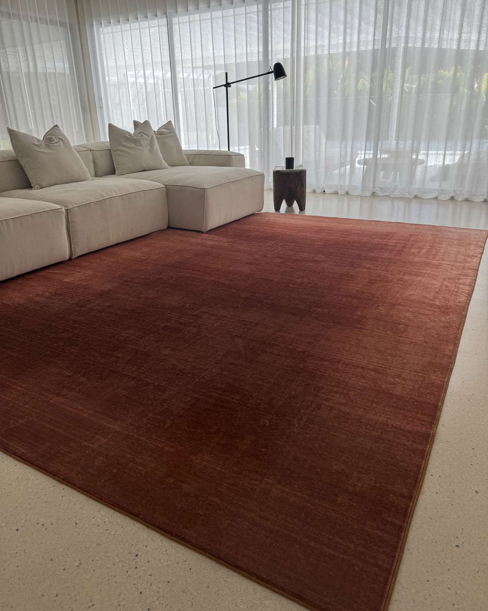 Tilden is a silky-soft, machine-washable, and foldable rug in luxurious, rich brown tones. Its fibres glisten from different angles, adding a subtle shimmer that enhances any space. This versatile and timeless piece is perfect for homes with kids and pets.