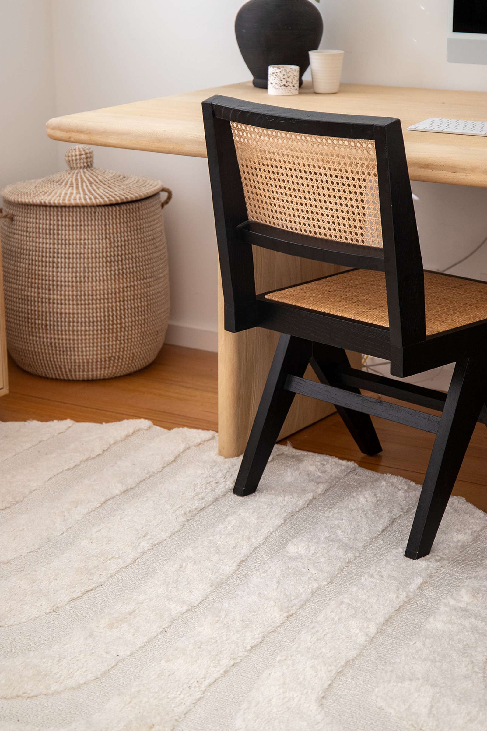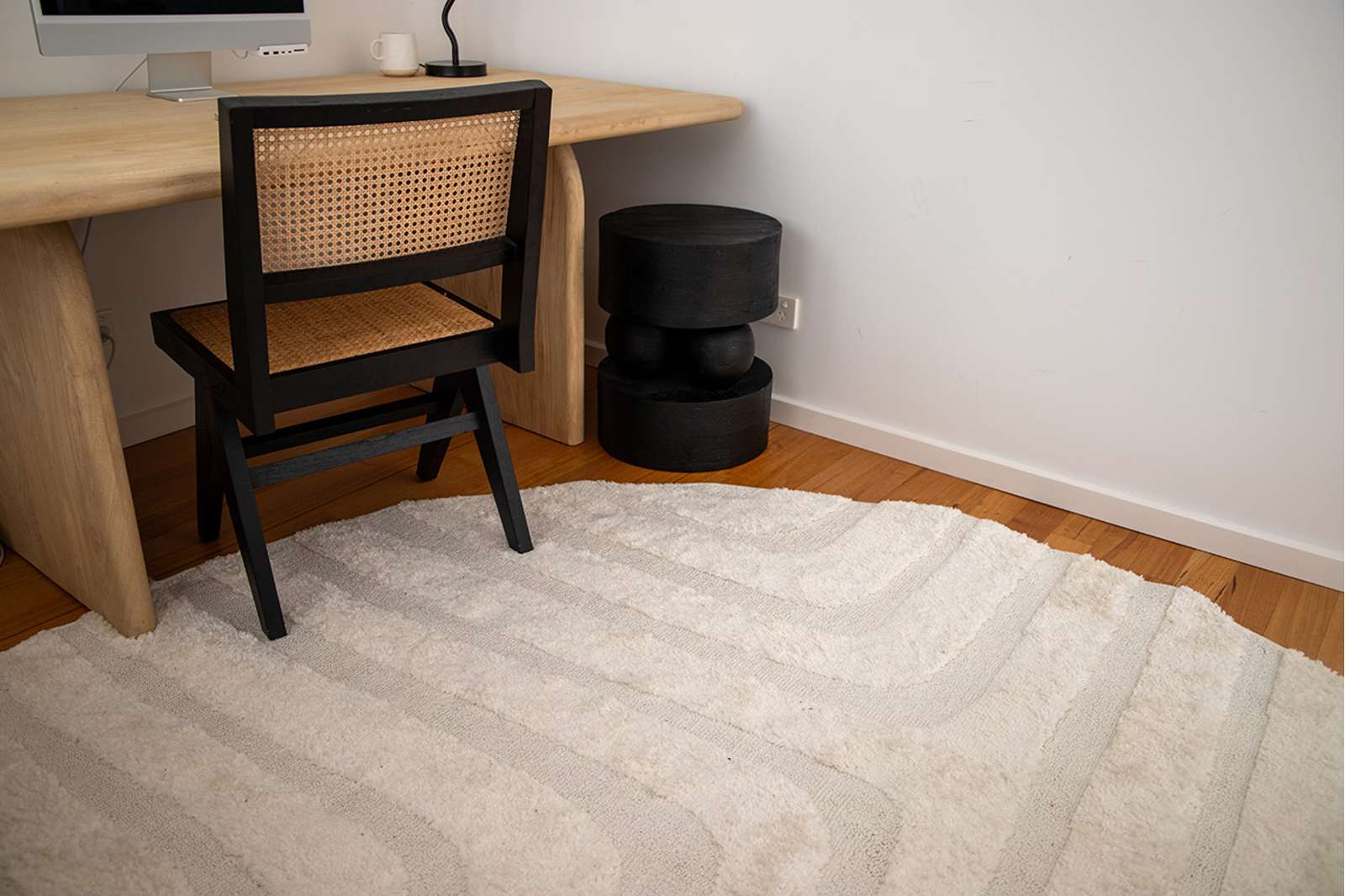 Noto is a warm-based ivory and cream round rug featuring an abstract striped carved pattern created with a high low pile variation.A unique texture that adds an extra-dimensional look.