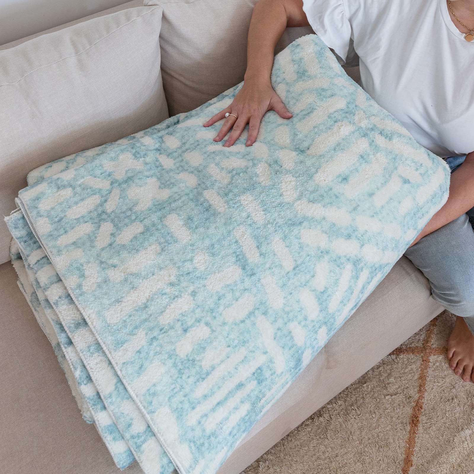 Cold machine wash below 30° Do not tumble dry Immediately hang and line dry after the wash cycle Avoid direct sunlight, and hang dry in a semi-covered shaded area Shake and fluff rug fibres after drying to revive the texture Do not bleach or use strong chemicals Do not apply heat or iron Do not dry clean Not suitable for use in rooms with floor-heating To maintain the grip on the gel dot underlay backing, avoid chemicals such as wood polish, wax and strong chemical cleaners